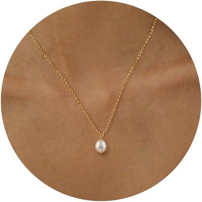 Summit Adventure Dainty Gold Necklace 14k Gold Plated Single Pearl Necklace Simple Pearl Choker Necklaces