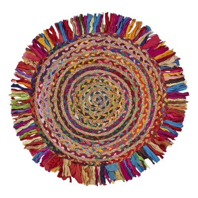 HomeRoots 4' Rainbow Abstract Geometric Hand Woven Round Rug With Fringe