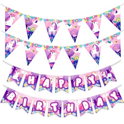 Treasures Gifted Unicorn Banner & Pennants Kit - Rainbow Unicorn Party Supplies