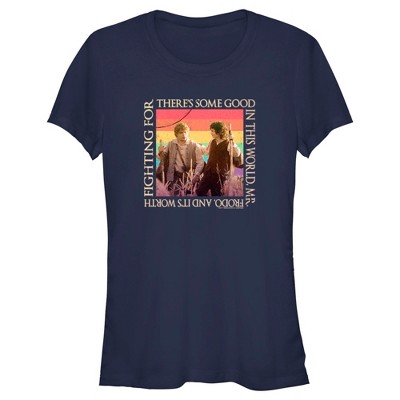 Juniors Womens Lord of the Rings Fellowship of the Ring Frodo and Samwise There's Some Good Rainbow T-Shirt