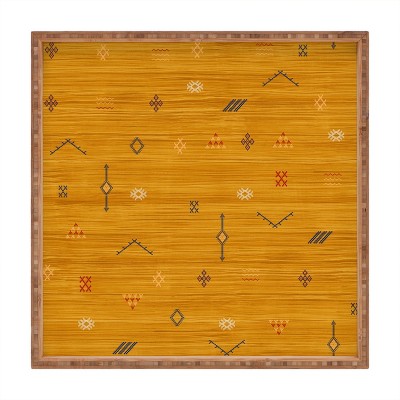 Becky Bailey Cactus Silk In Gold Square Bamboo Tray - Deny Designs