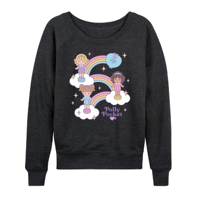 Women's - Polly Pocket - Polly Pocket Rainbows Lightweight French Terry Wide Neck Long Sleeve Graphic Shirt