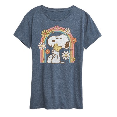 Women's - Peanuts - Retro Flower Rainbow Short Sleeve Graphic T-Shirt
