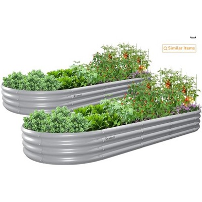 Anybear 2-Pack 35 x 24" Tall Galvanized Raised Garden Beds Outdoor, Round Metal Planter Box, Quartz Grey
