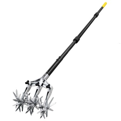Itopfox Rotary Cultivator Hand Tiller with Detachable Aluminum Tines Manual Garden Tool for Soil Cultivation Reseeding Grass & Flower Bed Maintenance