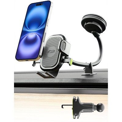 iHome 3-in-1 Universal Car Mount Bundle, Fully Adjustable Arm with Suction Cup Base and Vent Clip