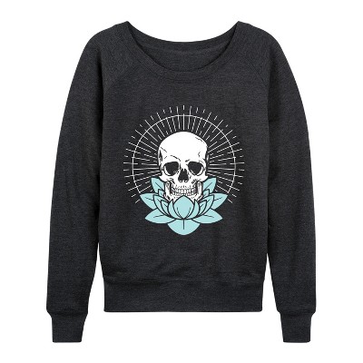 Women's - Instant Message - Skull Lotus Lightweight French Terry Wide Neck Long Sleeve Graphic Shirt