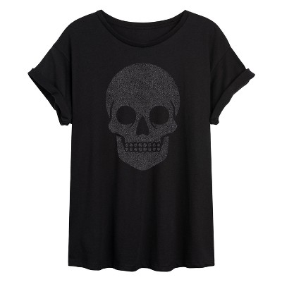 Women's - Instant Message - Skull Sparkle Oversized Graphic T-Shirt