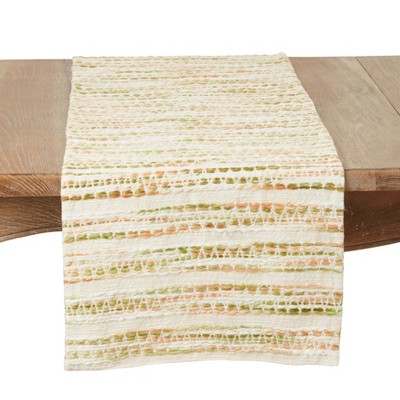 Saro Lifestyle Textured Corded Table Runner with Fringe, 16"x72", Ivory