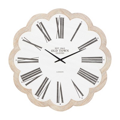 33"x33" Wood Wall Clock with Scallop Frame White - Olivia & May: Silent, Farmhouse Style, Roman Numerals