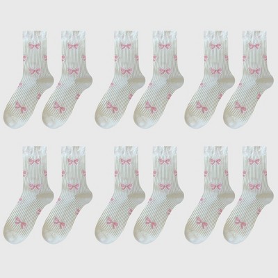 Anna-Kaci Women's 6-Pair Bow Pattern Crew Socks with Fuzzy Ruffled Cuff