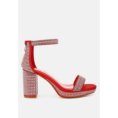 Perphy Women's Rhinestone Mesh Bow Ankle Strap Stiletto Heel Sandals