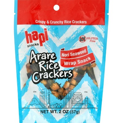 Hapi Snacks Arare Rice Crackers, Nori Seaweed Wrap Snack - Case of 12 - 2 oz