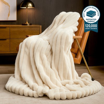 Cozy Bliss Striped Faux Fur Throw Blanket, Cozy Warm Plush Decorative Blanket