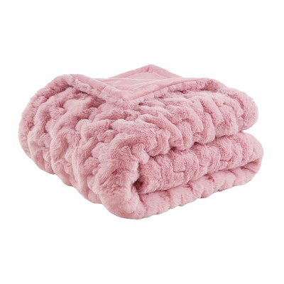 Gracie Mills Ashlee Modern Solid Ruched Fur Throw Blanket