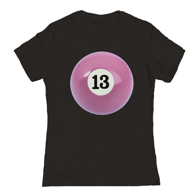 Rerun Island Women's 13 Ball Pink Short Sleeve Graphic Cotton T-Shirt - Black M