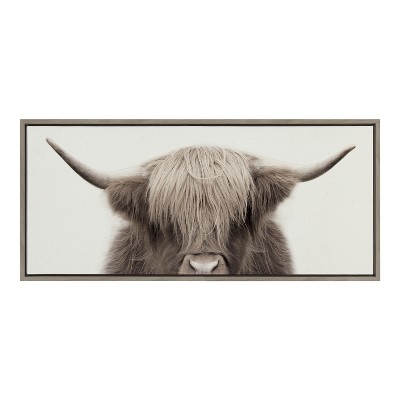 Kate and Laurel - Sylvie Hey Dude Highland Cow Color Framed Canvas by The Creative Bunch Studio