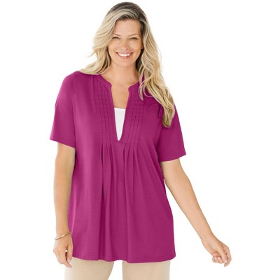 Woman Within 7-Day Three-Quarter Sleeve Pintucked Henley Tunic