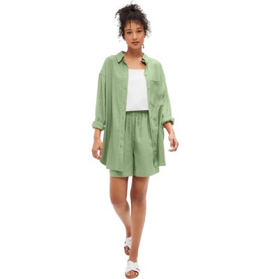 ellos Oversized Linen-Blend Boyfriend Shirt