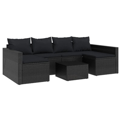 vidaXL 7 Piece Patio Sofa Set with Cushions Black Poly Rattan - without storage
