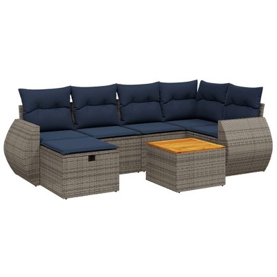 vidaXL 7 Piece Patio Sofa Set with Cushions Poly Rattan