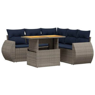 vidaXL Patio Sofa Set with Cushions and Table Outdoor 7 Piece Poly Rattan