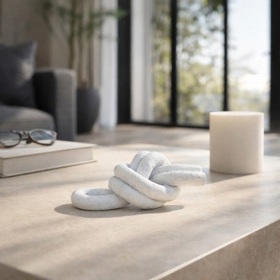 Artistic Polyresin Loop Knot Sculpture Object for Tabletop Display - Decorative Figurine Accent For Home Decor for Living Room Decorations - 9", White
