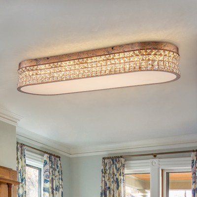 LLHZSY 38 3/5" Vintage Crystal LED Ceiling Light, Oval Shaped Metal Flush Mount Fixture for Indoor Spaces