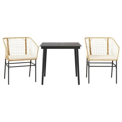 vidaXL Garden Dining Set Beige PE rattan 3 Piece Set - 31.5" table length Chair 2