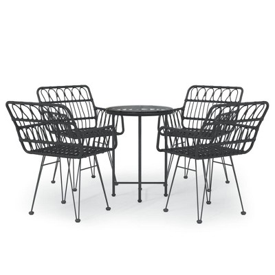 vidaXL Garden Dining Set Grey, Dark grey, Black PE rattan 5 Piece