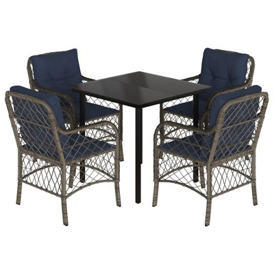vidaXL Contemporary Patio Dining Set with Cushions, Poly Rattan, Glass