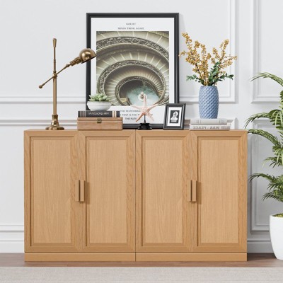 PexFix 62" W x 31" H Modern Sideboard Cabinet with 4-Doors Rattan Panel Buffet Console Accent Storage Cabinet for Hallway Entryway Dining Room Natural