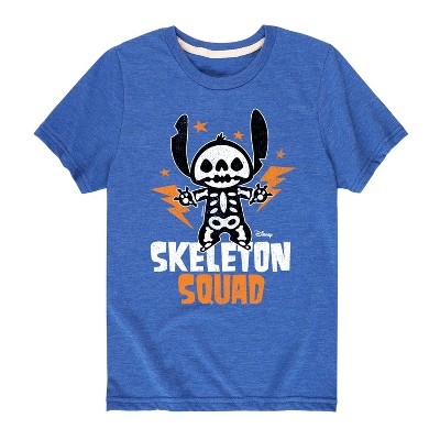 Women's - Lilo & Stitch - Halloween Skeleton Squad Lightweight French Terry Wide Neck Long Sleeve Graphic Shirt