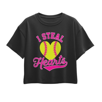 Girls' - Instant Message - I Steal Hearts Softball Short Sleeve Boxy Graphic T-Shirt