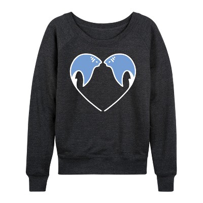 Women's - Instant Message - Sting Ray Heart Lightweight French Terry Wide Neck Long Sleeve Graphic Shirt