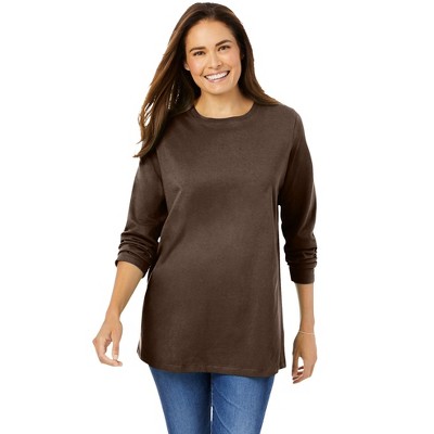 Woman Within Perfect Printed Long-Sleeve Crewneck Tee