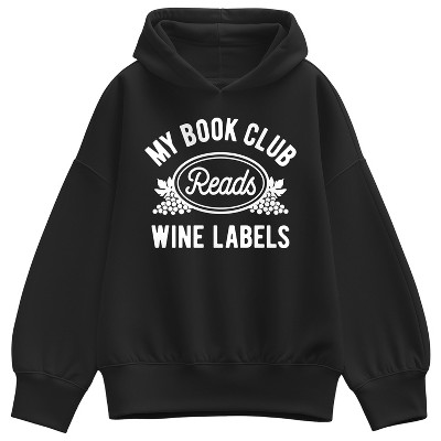 Women's Instant Message My Book Club Reads Wine Labels Oversized Fleece Hoodie Sweatshirt - Black - 2 X-Large