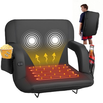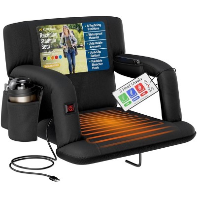 Alpcour 25-inch Extra Wide Portable Reclining Heated Stadium Seat with Armrests Black