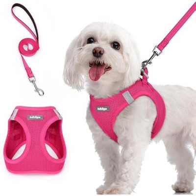rabbitgoo Dog Harness Small Sized and Leash Set, Step in Soft Light Puppy Pet Harness, Reflective for Safe Easy Walking, Rose Red M