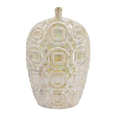 HomeRoots 10" Ivory Gray And Gold Abstract Distressed Ceramic Round Table Vase