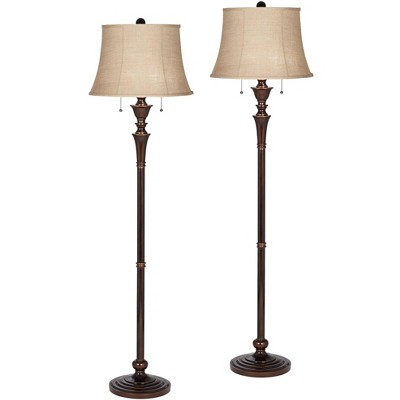 Regency Hill Brooke Traditional 60" Tall Standing Floor Lamps Set of 2 Lights Pull Chain Brown Metal Bronze Finish Living Room Bedroom House Reading