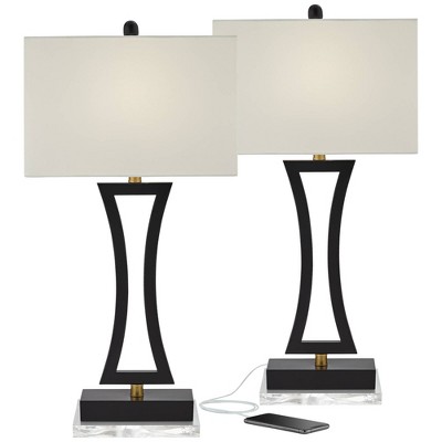 360 Lighting Roxie Modern Table Lamps Set of 2 with Clear Acrylic Risers 31" Tall Black USB Charging Port Off White Shade for Bedroom Living Room Kids