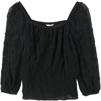 Alfani Womens Sheer-Sleeve Pullover Blouse