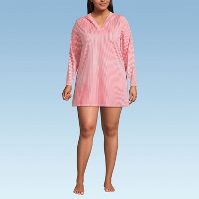 Lands' End Women's Cotton Jersey Long Sleeve Hooded Swim Cover-up Dress