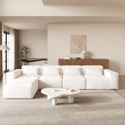 MYINDA 110" Modular Sectional Sofa, L Shape with Extra-large Seat, Free Combination,Boucle Fabric