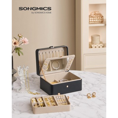 Jewelry Box with Mirror - 2 - Layer Organizer, Travel Case. Removable Tray, 6.9 x 8.7 x 4.3 Inches, Ideal for Earring & Necklace Storage