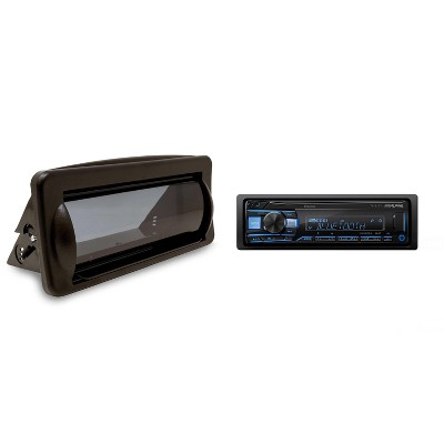 Alpine UTE-83BT Mech-less Digital Media Receiver with Creative Audio CAMC1B Marine Single DIN Radio Mounting Kit with Retractable Cover (Black)