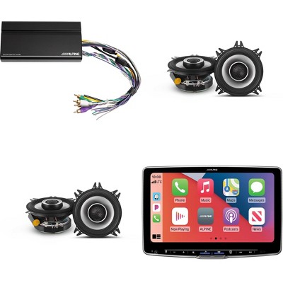 Alpine Halo11 ILX-F511 CarPlay/Android Auto Receiver with Alpine S-A55V 550W 5-CH Amp, and RUX-H02 Volume/Bass Knob
