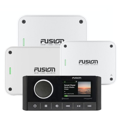 Fusion MS-RA670 Apollo Marine Entertainment System With Fusion MS-AP61800 Apollo 6 Channel, MS-AP41200 4 Channel, and MS-AP12000 Mono Amplifiers