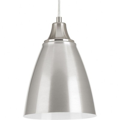 Progress Lighting Pure 1-Light LED Pendant, Brushed Nickel, Polished White Interior, Steel, Damp Rated, 3000K, 90+ CRI